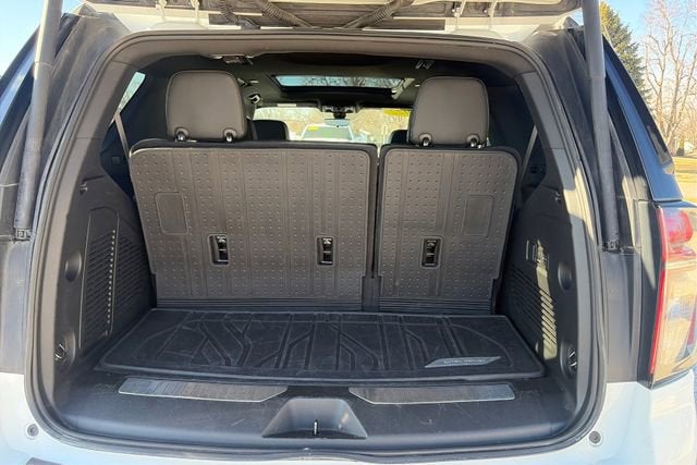 The exterior of this Tahoe is finished in a striking White color, complemented by the sleek and sophisticated styling that Chevrolet is known for. Step inside, and you'll be greeted by a spacious and well-appointed cabin, featuring premium leather seating, heated and ventilated front seats, and a panoramic sunroof that floods the interior with natural light.